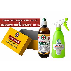 1L Soluție dezinfectantă pentru suprafețe + 3x200ml Gel dezinfectant pentru igiena mainilor